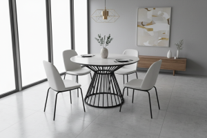 Gornja ploča stola izrađena je od kvalitetne keramike, materijala koji je danas posebno cijenjen u modernom uređenju doma. Kupci mogu birati dezen i boju keramike, a zahvaljujući njenoj prirodnoj teksturi, svaki sto dobija vlastiti, jedinstveni izgled.
