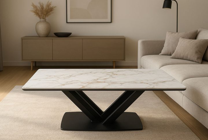 Gornja ploča izrađena je od keramike, savršene za savremene interijere zbog svoje izdržljivosti, lakoće održavanja i luksuznog izgleda. Kupci mogu birati dezen i boju keramike, a zahvaljujući njenoj prirodnoj teksturi, svaki sto dobija vlastiti, jedinstveni izgled.